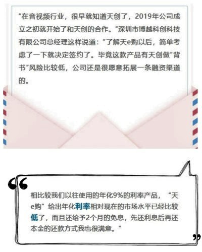 作為一款純互聯(lián)網(wǎng)化產(chǎn)品,“天e購”可依據(jù)歷史交易數(shù)據(jù)、個人征信等數(shù)據(jù),通過大數(shù)據(jù)技術(shù)手段,由系統(tǒng)自動完成篩選和評級,自動化批復(fù)額度和利率,從而實(shí)現(xiàn)全線 上化授信。向天創(chuàng)采購產(chǎn)品,可以直接通過“天e購”獲取信用額度,無需抵押,天創(chuàng)即可立即發(fā)貨。